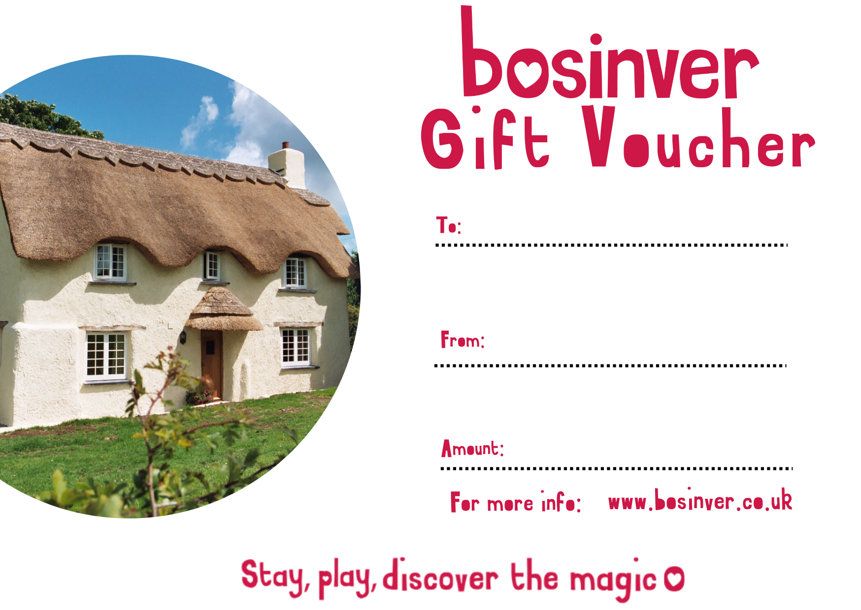 - We now offer the option to purchase a Bosinver voucher, which can be used to discount a loved one’s holiday. Simply call our reception to place an order. Your gift card will be posted directly to the recipient with a handwritten card, or if you prefer, sent to you at no extra cost.